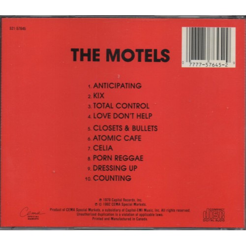 MOTELS - Motels (CEMA Special Markets – S21-57645) USA 1992 reissue CD of 1979 album (Alternative Rock, New Wave, Pop Rock) | Item is still factory sealed in NEW condition | On inlay: Printed and manufactured in Canada | On disc: Made in Canada | On insert: Printed in Canada