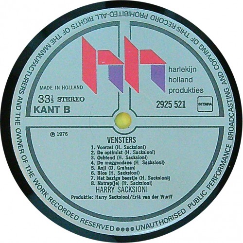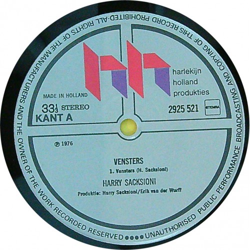HARRY SACKSIONI Vensters (Harlekijn – 2925 521) Holland 1976 LP (Acoustic, Folk Rock, Pop Rock)