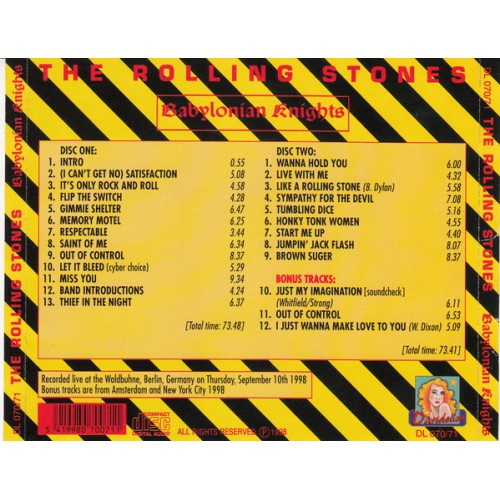 ROLLING STONES - Babylonian Knights (Dandelion – DL 070/71) Europe 1999 2CD-set (Live Germany 1998) | CD, Booklet and inlay: NM (mint-)