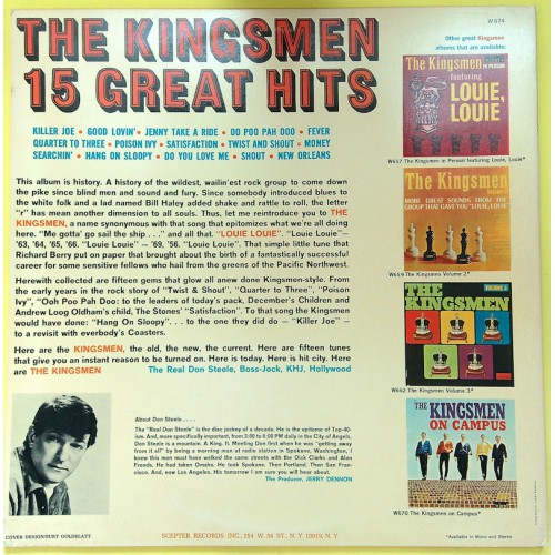 KINGSMEN 15 Great Hits (Wand W 674) USA 1966 MONO LP (Garage Rock, Rock & Roll)