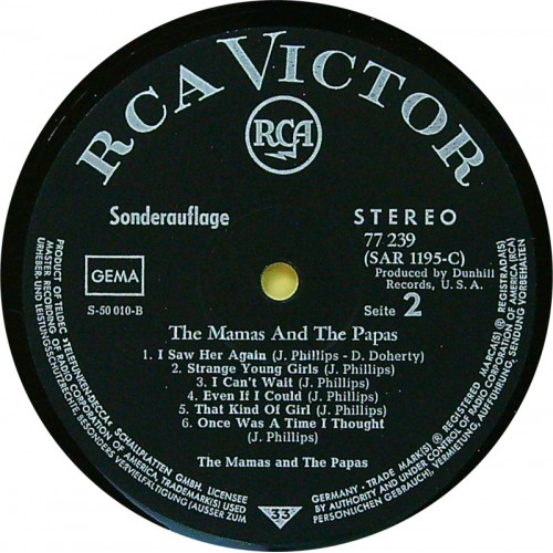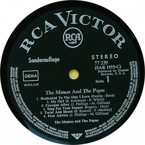 MAMAS AND THE PAPAS The Mamas & The Papas (SR International – HI-FI 77 239, RCA Victor – 77239) Germany 1967 original Club Edition compilation LP (Pop Rock, Classic Rock)