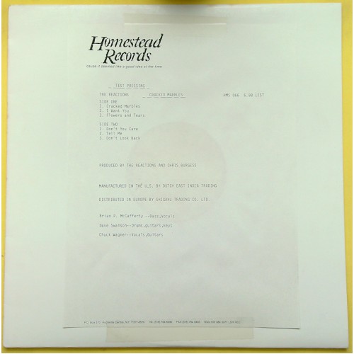 REACTIONS - Cracked Marbles (Homestead Records – HMS066) USA 1986 Test-Pressing mini-LP / no cover | comes with company info sheet. (Indie Rock, Power Pop)