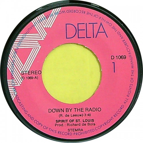 1. Spirit Of St. Louis – Down By The Radio / Hotelroom (Delta D 1069) made in Holland 1974 original 45 w/Picture Sleeve) | vinyl: NM (mint-) | cover: VG- (ugly tape on cover / sticker on cover.)