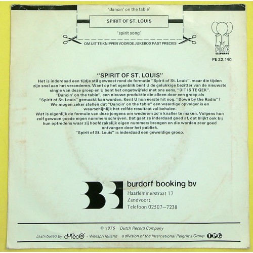 2. Spirit Of St. Louis – Dancin' On The Table / Spirit Song (Pink Elephant – PE 22.140) made in Holland 1976 original 45 w/Picture Sleeve) | vinyl: NM (mint-) | cover: VG++ (excellent)