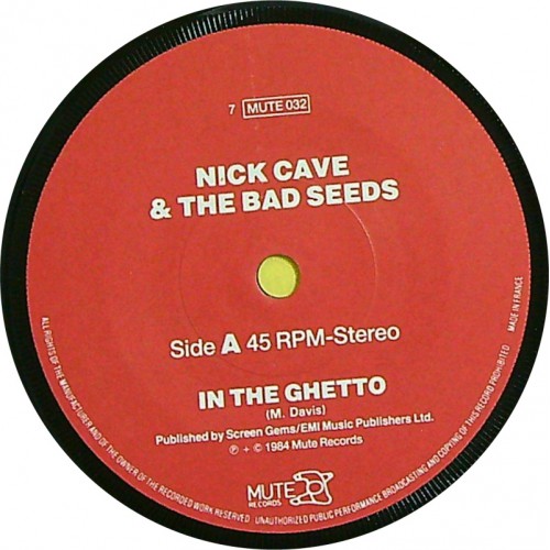 NICK CAVE FEATURING THE BAD SEEDS In The Ghetto / The Moon Is In The Gutter (Mute – 7 MUTE 032) UK 1984 PS 45 (Alternative Rock)