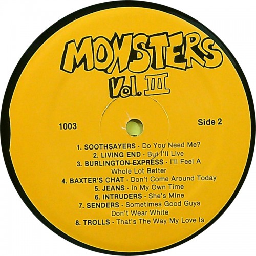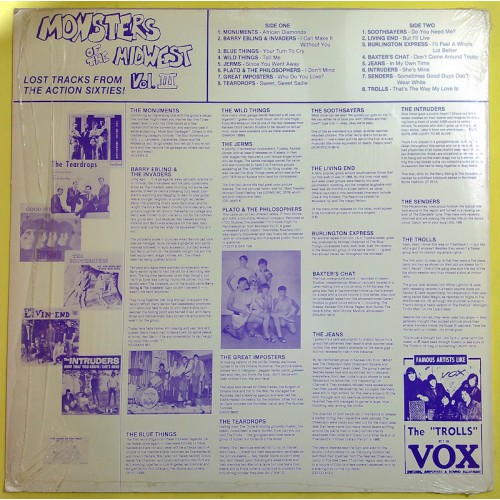 Various MONSTERS OF THE MIDWEST Vol. III (Not On Label – 1003) USA 1987 compilation LP of 60's rare 45's (Garage Rock)