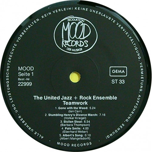 UNITED JAZZ+ROCK ENSEMBLE - Teamwork (Mood Records – 22999) Germany 1978 LP (Fusion, Jazz Rock) | vinyl: NM (mint-) | cover: VG++ (excellent) some lamination loose.