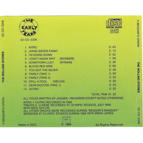 ROLLING STONES - A Beggar`s Opera (The Early Years – 02-CD-3308) Europe 1989 CD | CD, Booklet and inlay: NM (mint-) unofficial.