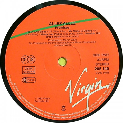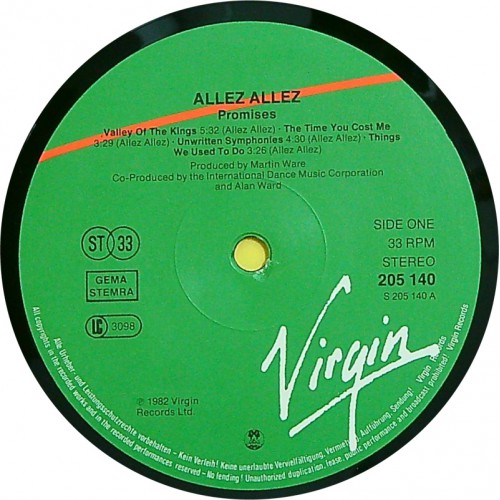 ALLEZ ALLEZ Promises (Virgin – 205 140) Europe 1982 LP (New Wave, Pop Rock)