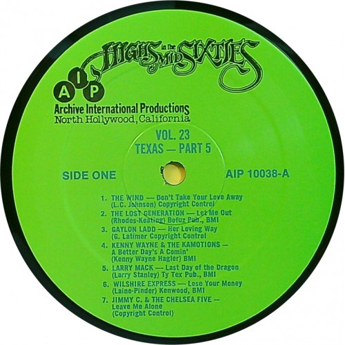 Various HIGHS IN THE MID SIXTIES Vol. 23: Texas Part 5 (AIP Records – AIP 10038) USA 1986 60's compilation LP (Garage Rock)