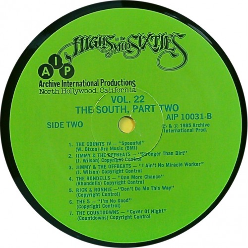 Various HIGHS IN THE MID SIXTIES Vol. 22: The South Part 2 (AIP Records – AIP 10031) USA 1985 60's compilation LP (Garage Rock)