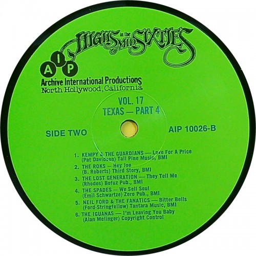 Various HIGHS IN THE MID SIXTIES Vol. 17: Texas Part 4 (AIP Records – AIP 10026) USA 1986 60's compilation LP (Garage Rock)