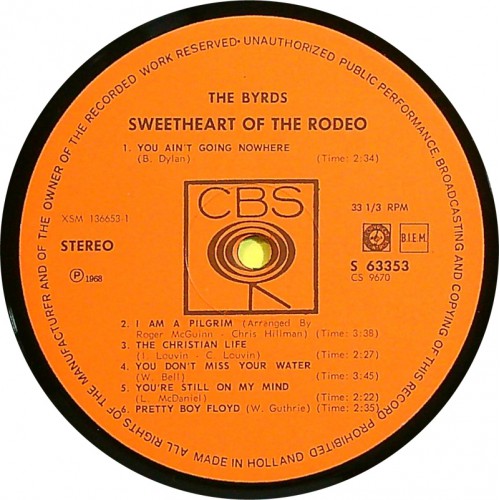 BYRDS - Sweetheart Of The Rodeo (CBS – S 63353) Holland 1968 original 1st pressing LP (Folk Rock, Country Rock) vinyl: NM (mint-) |cover: VG++ (excellent) | comes with original company inner sleeve.