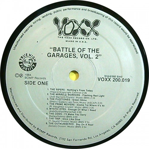 Various BATTLE OF THE GARAGES VOL. 2: AMERICA'S PSYCHEDELIC UNDERGROUND (Voxx 200.019) USA 1984 compilation LP (Garage Rock, Psychedelic Rock)