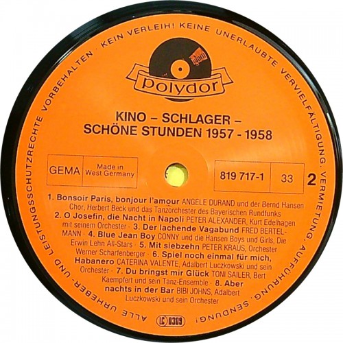Various - KINO SCHLAGER - SCHÖNE STUNDEN 1957-1958 (Polydor – 819 717-1) Germany 80's compilation LP (Schlager, Soundtrack) | vinyl: NM (mint-) | cover: NM (mint-)