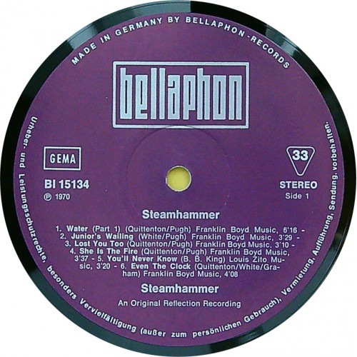STEAMHAMMER - Steamhammer (Bellaphon BL 15134) Germany 1975 reissue of 1969 LP