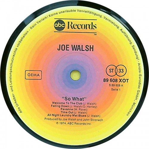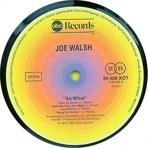 JOE WALSH - So What (ABC Records – 89 608 XOT) Germany 1975 reissue LP of 1974 album (Blues Rock, Classic Rock) pré-Eagles. | vinyl: NM (mint-) | cover: excellent (VG++) comes with printed inner sleeve.