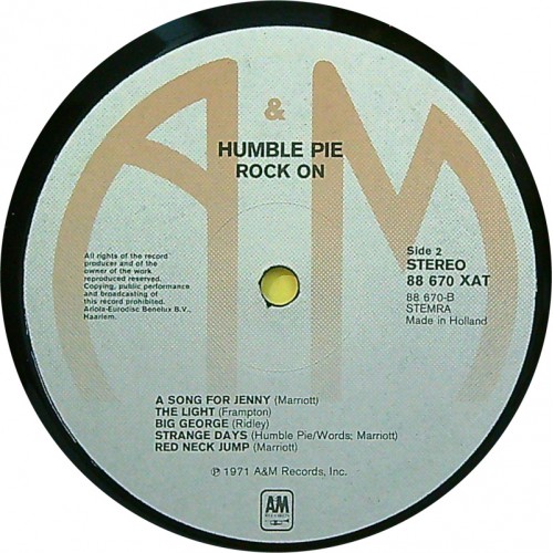 HUMBLE PIE - Rock On (A&M Records – 88 670 XAT) Holland 1974 gatefold reissue LP of 1971 album (Blues Rock, Hard Rock) | vinyl: NM (mint-) | cover: VG+ (some storage wear around the edges.) Dutch pressing LP | UK gatefold cover.