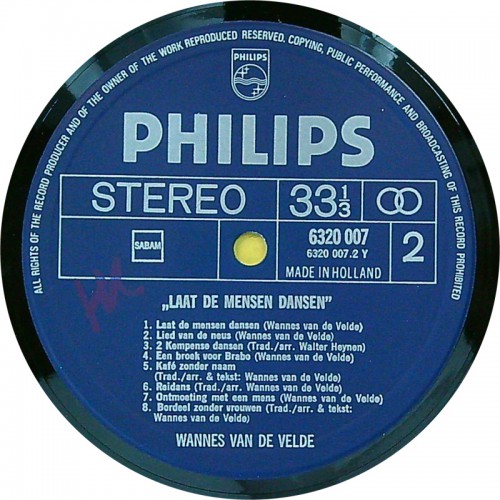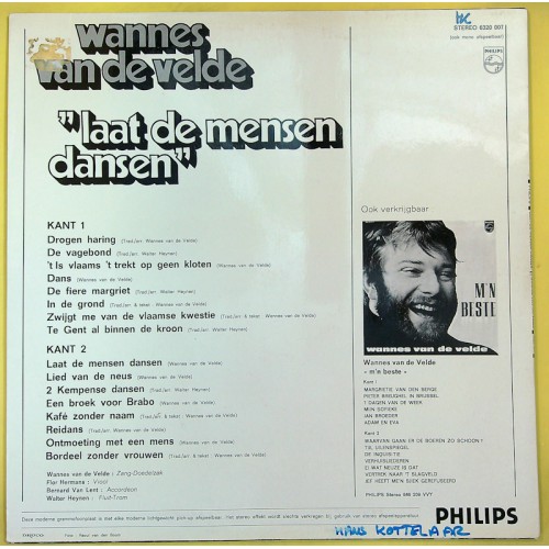 WANNES VAN DE VELDE - Laat De Mensen Dansen (Philips – 6320 007) Belgium 1972 LP (Folk) | vinyl: NM (mint-) | cover: NM (mint-) initials written on backcover and label.
